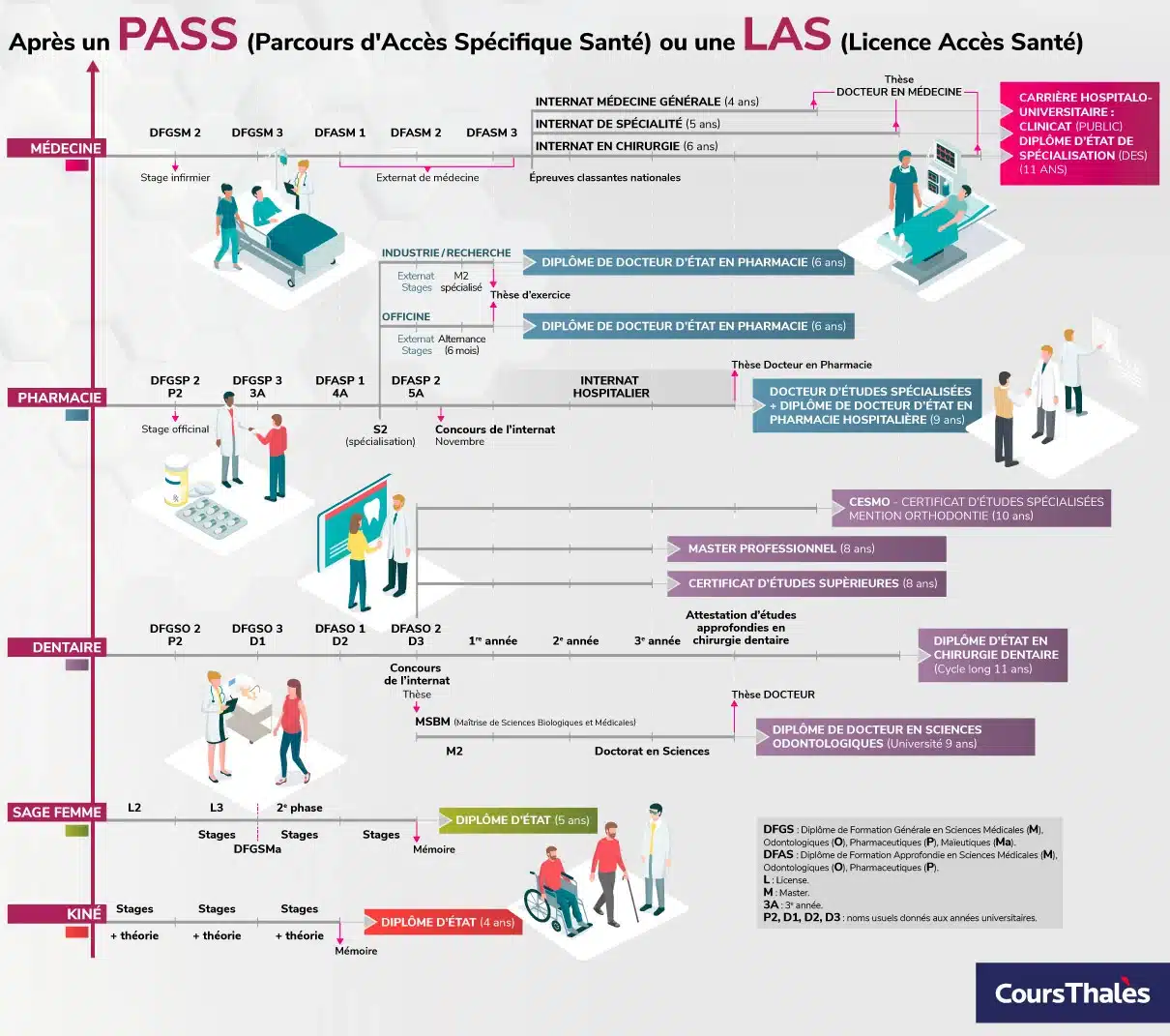 - Vous soyez persévérant, travailleur, et prêt à de longues années d’étude. Pour être «Docteur en Médecine», donc une fois votre thèse passée, il faut compter minimum 10 ans d’études après le Bac. Certes ce ne sont pas 10 années de cours magistraux théoriques, entre les stages, l’externat ou l’internat, mais ce sont tout de même des années avec des partiels, des examens, et un salaire très faible, voire inexistant.