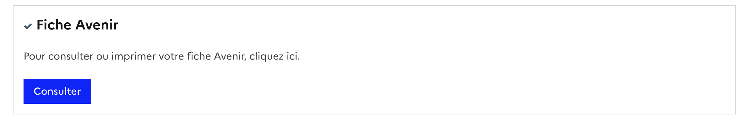 Ensuite il faut se rendre à la rubrique « Détails », puis « Fiche Avenir » et cliquer sur « consulter » :