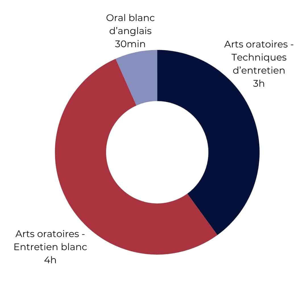Une fois les épreuves écrites passées et les résultats d’admissibilité publiés, il s’agit pour les élèves de se préparer aux épreuves orales. Ces épreuves sont généralement composées d’un entretien individuel et/ou collectif (présentation des motivations du candidat, réflexion sur un sujet…) et éventuellement d’une ou de deux épreuves de langues. Les élèves apprennent à maîtriser les techniques de l’entretien et à préciser leurs projets professionnels par le biais de cours de méthodologie et d’ateliers puis passent un oral blanc de langue et une simulation d’entretien individuel conforme à l’école choisie. Au-delà de leur propre expérience, les élèves peuvent assister aux entretiens et aux reprises des autres candidats qui permettent aussi de progresser.