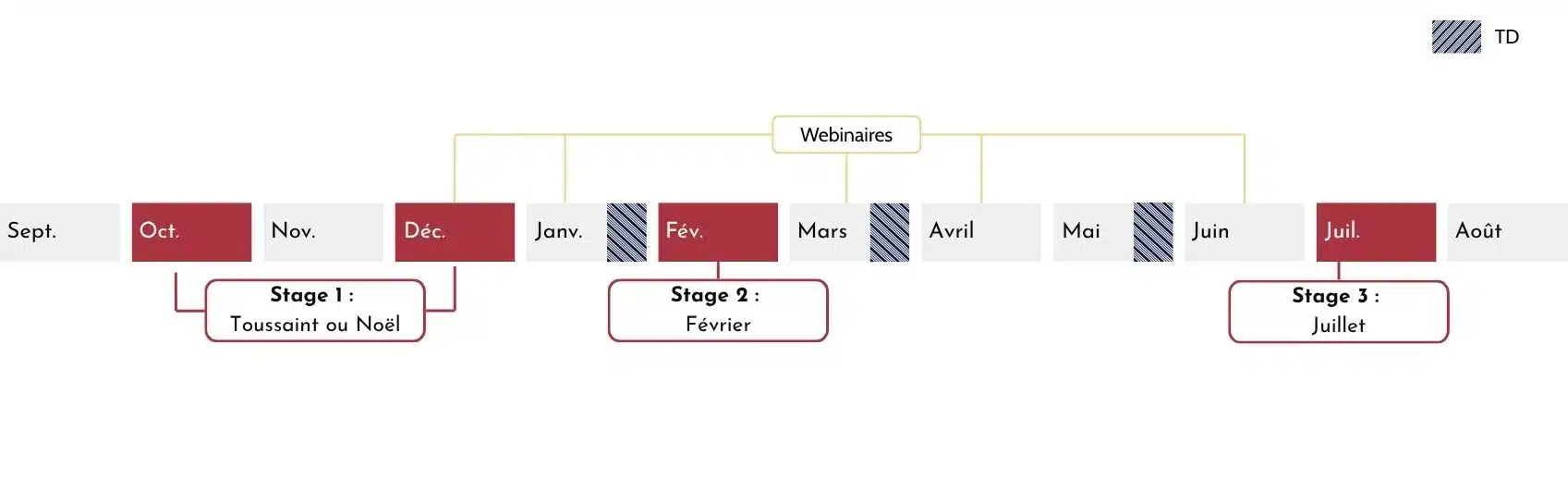 3 stages intensifs (Toussaint ou Noël + Février + Juillet)