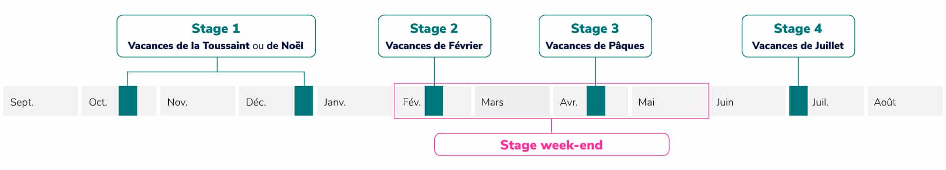 Stage 1 Noël + Stage 2 Février + Stage 3 Pâques + Stage 4 Juillet
