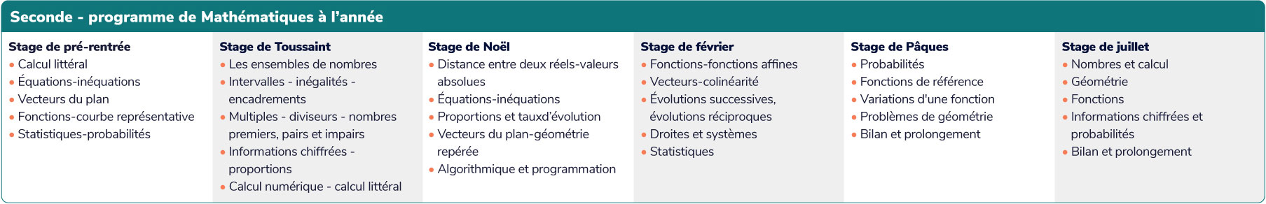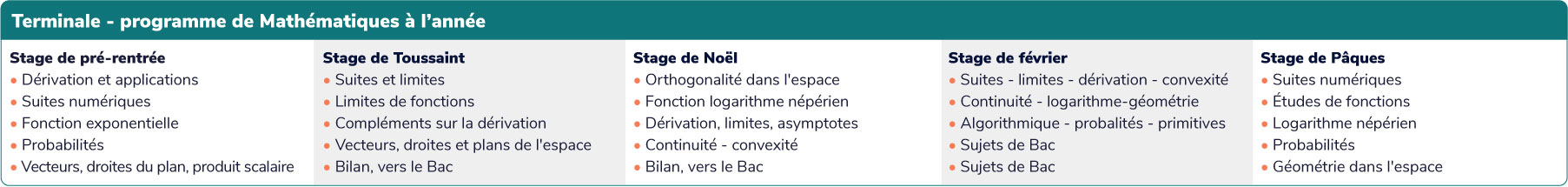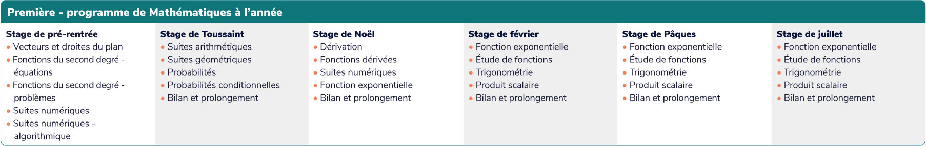 En Première, nous proposons des stages de Mathématiques à chacune des vacances scolaires.
